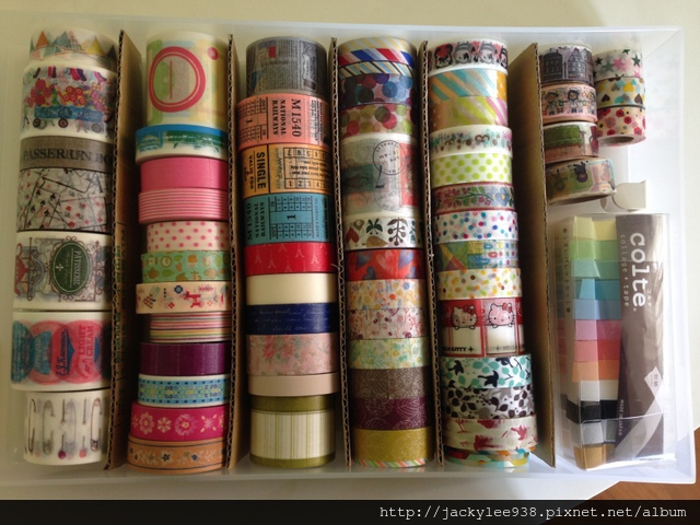 還記得上篇紙膠帶文有提過,數量應該很快就會破百了,發文時可沒有預謀或有訂單在運送途中,但莫非定律(If something can go wrong, it will.)總是發生。因此,就在11/22就出現了那命定的第100捲紙膠帶,而且一下子超過的就是14捲,也就是說目前紙膠帶數目已來到了114捲了(驚!)。然後,說要幫紙膠帶物色新家這事,果然也同步處理,紙膠帶們也有了個新的落腳處了。