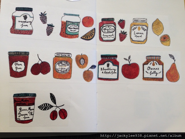 果醬的右邊都有水果圖案讓你知道口味,共有9種。